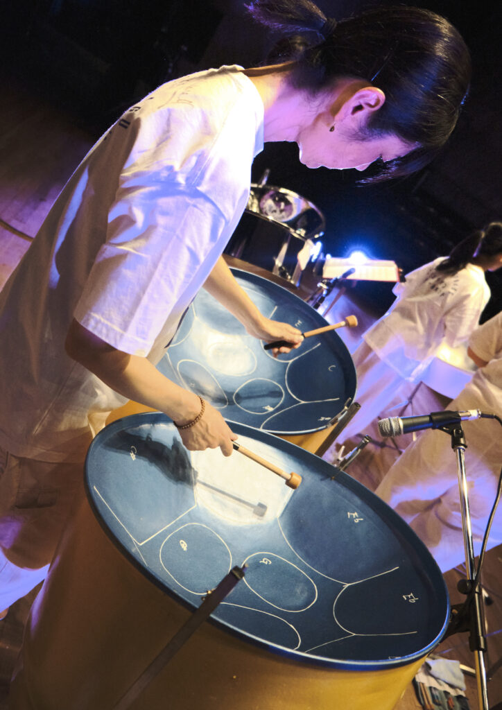 この日はリハーサルからずっと一緒に過ごさせてもらって、たっぺぇやまいちゃんが言っていたことがすごくわかりました。わかりましたというか、感じました、かな。魅力はたくさんあるけれども、自分が1番感じたところはスティールパンが好きで音楽すること、バンドすることを純粋に楽しんでいること、その喜びの波が伝わってきたところなのかなと思う。そのことを特に感じさせてくれたのは中高生の若い子たち。ホールコンサートってちょっと堅苦しいムードを背負いがちだと思うんですが、リハの隙間時間などに中高生らが無邪気に遊んで笑顔でいる場面や BGM(or 脳内音楽?)にノッて体を揺らしている場面(リズム感(!))とかがすごくいいなぁ… って、そういう何気ないシーンの数々が印象に残っています。音楽にはすべてでると思うんです。だからあの初々しく元気なエネルギーも、きっと。まいちゃんやたっぺぇを中心にアレンジや作曲された数々の楽曲の中にそれが息づいていた。音楽に熟達している2人からきっと練習のコツなども教えてもらっているんだろう。数あるパートのそれぞれの演奏力にも確かなものを感じた。まいちゃんのアレンジしたメロディーや激情のソロも胸に沁みてきて熱くなった。